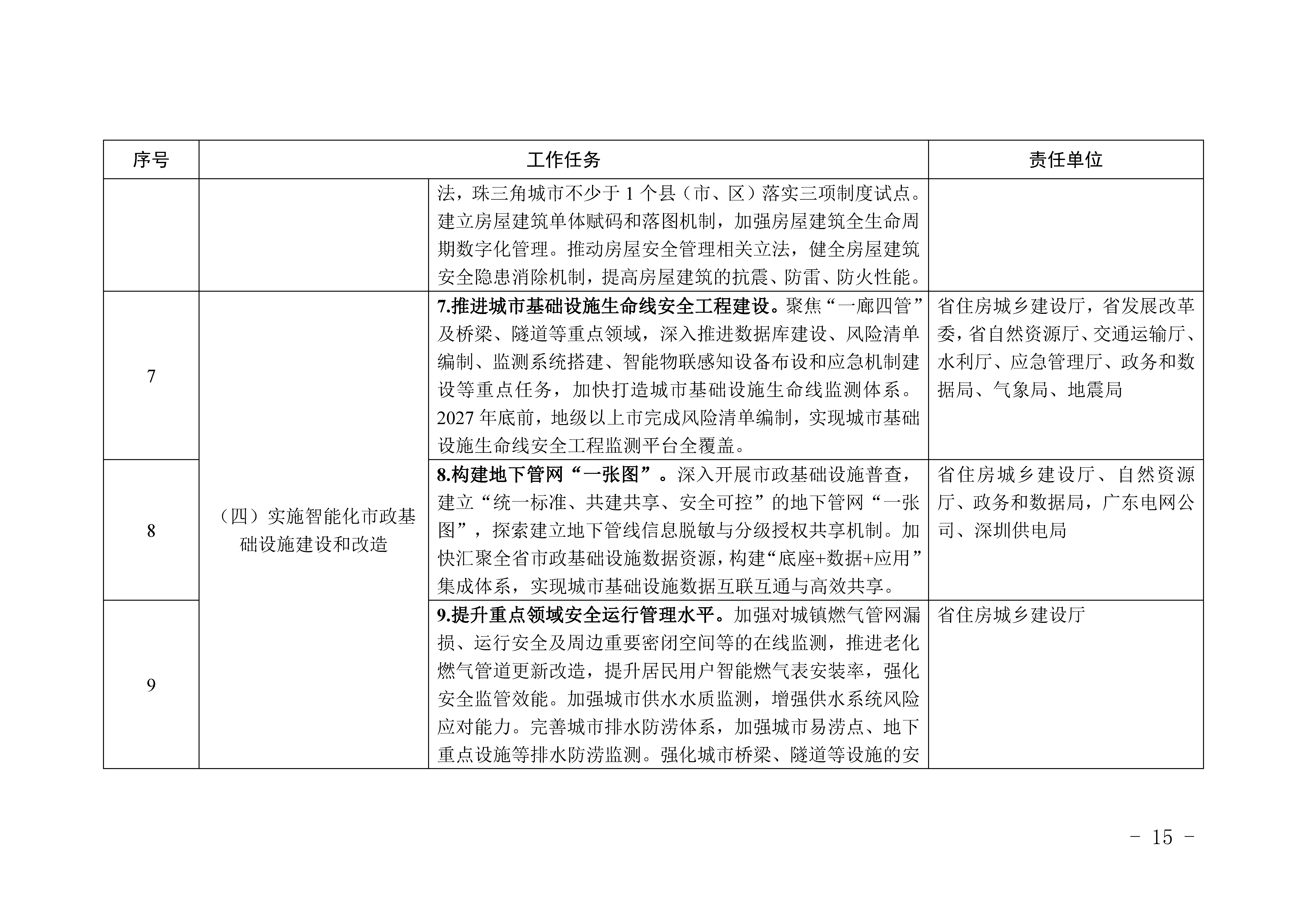 《广东省推进新型城市基础设施建设打造韧性城市行动方案(2025-2027年)》明确未来三年广东推进新型城市基础设施建设、打造韧性城市的路线图和时间表,涵盖四部分9方面22项任务,旨在通过智慧化手段提升城市治理水平与安全韧性。