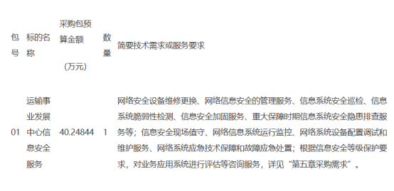 项目名称:运输事业发展中心信息安全服务